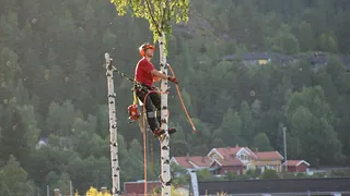 Vi utfører trefelling på en sikker og skånsom måte. Sammen med kunden blir vi enige om beste løsning for ditt tre. Er det god plass kan treet helfelles i en bit fra bakken. Der det er trangt om plassen, kan treet plukkes ned i små biter, såkalt seksjonsfelling. Vi benytter kun godkjent klatreutstyr og metoder ved klatring. Sikkert for oss og trygt for deg som kunde.